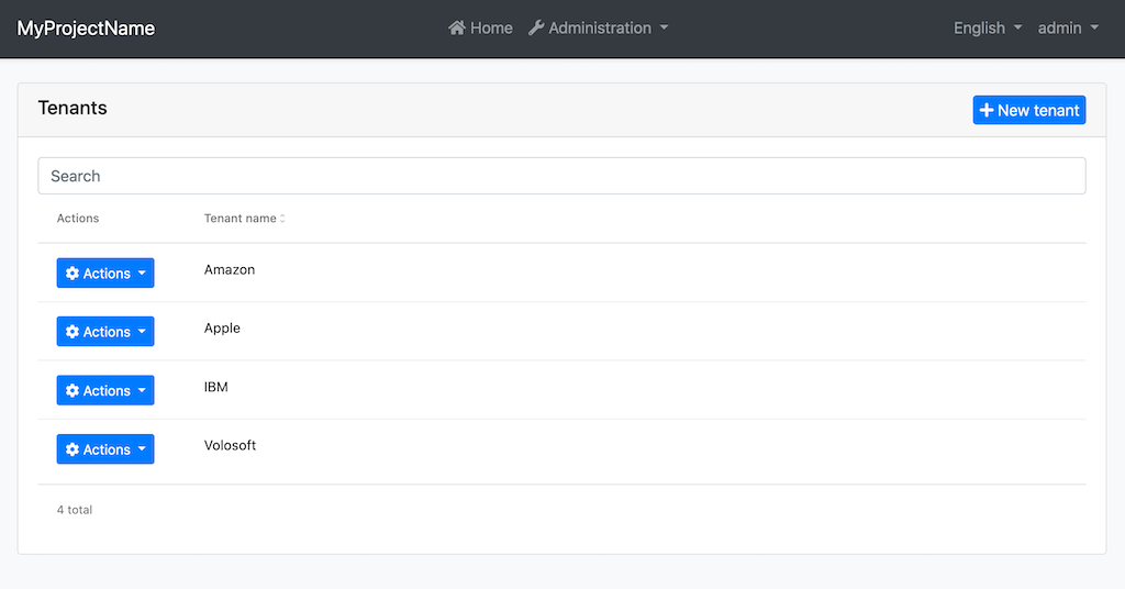ABP Angular UI supports the multi-tenancy. The following features related to multi-tenancy are available in the startup templates.