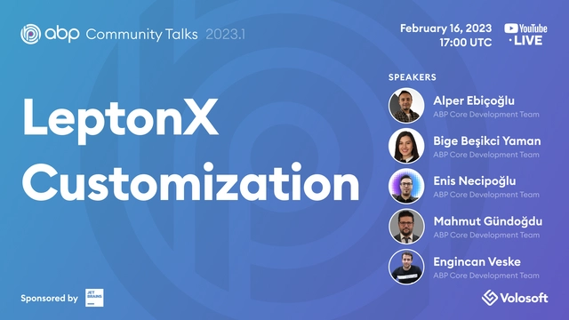 In this episode of ABP Community Talks, 2023.1; we'll talk about LeptonX Customization. We will dive into the details and show you how to customize the LeptonX Theme with examples.