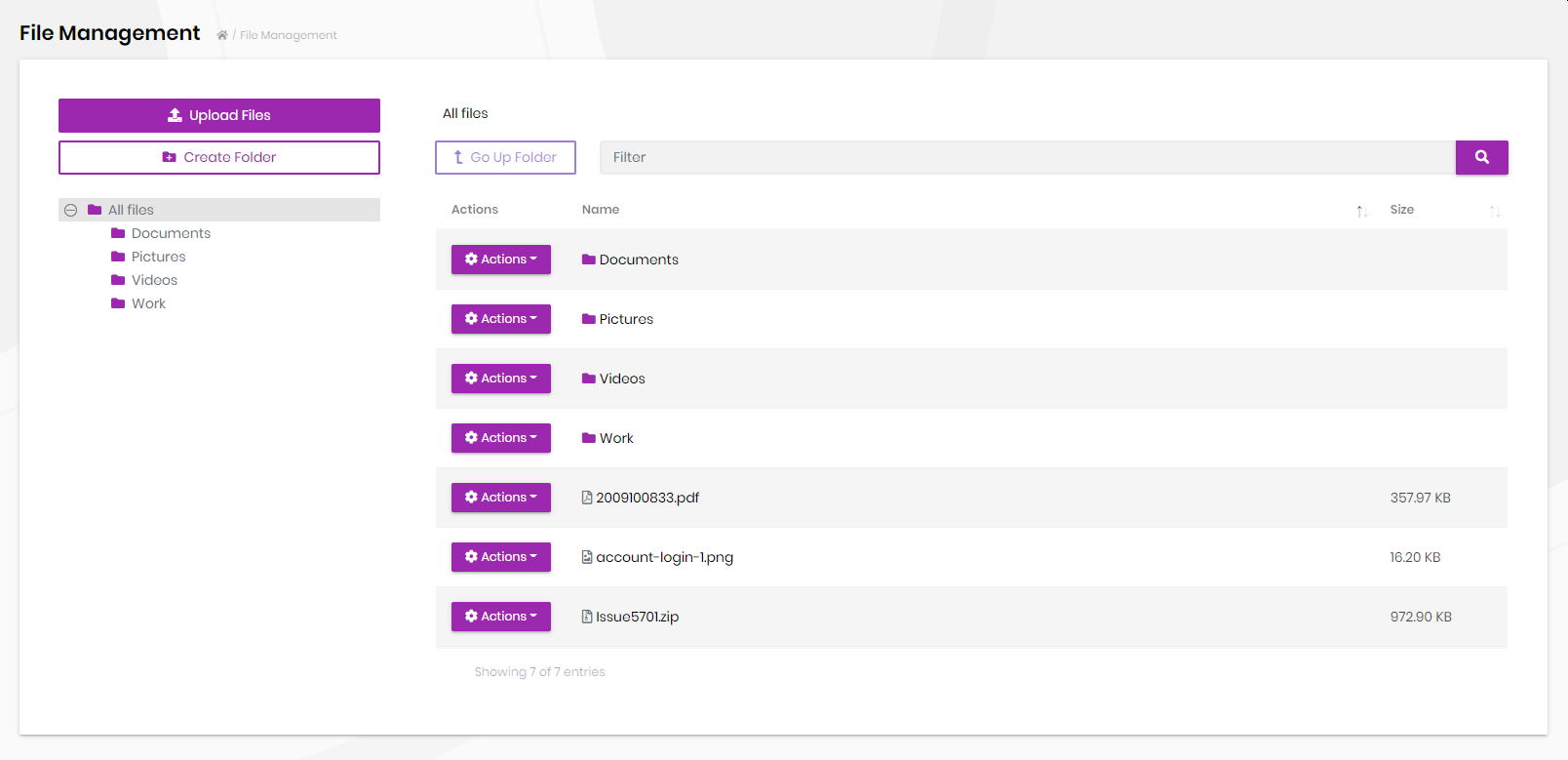Angular UI for the File Management module is available with the version 3.2. You can add it to your solution using the ABP Suite.