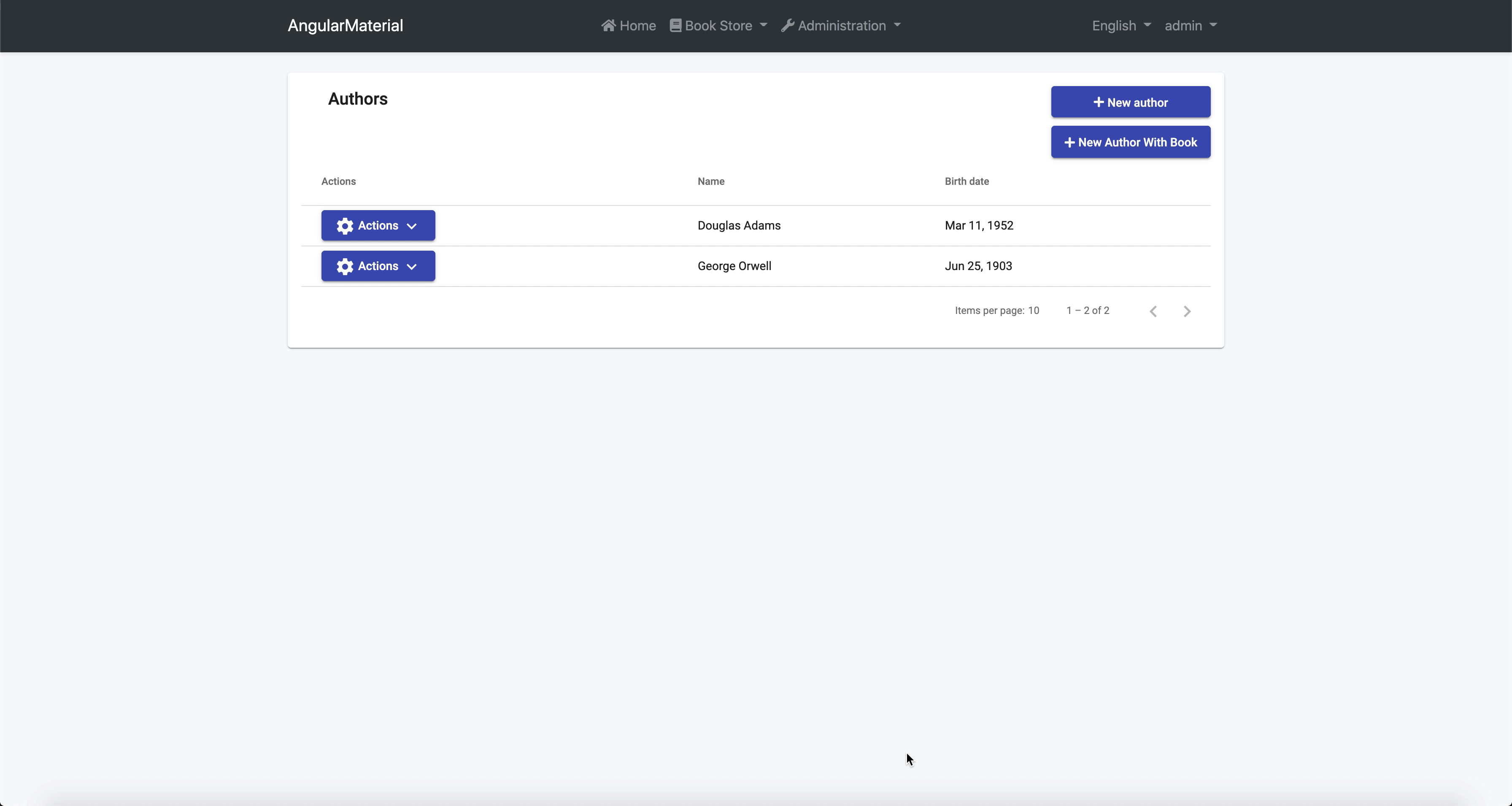 Finally add Create Author With Books button near the Create Author button in author.component.html: