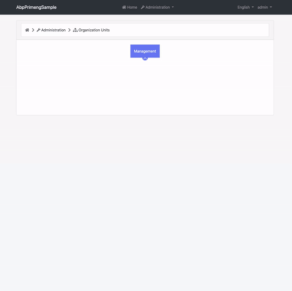We will create an organization units page and use PrimeNG's OrganizationChart and Table components on the page.
