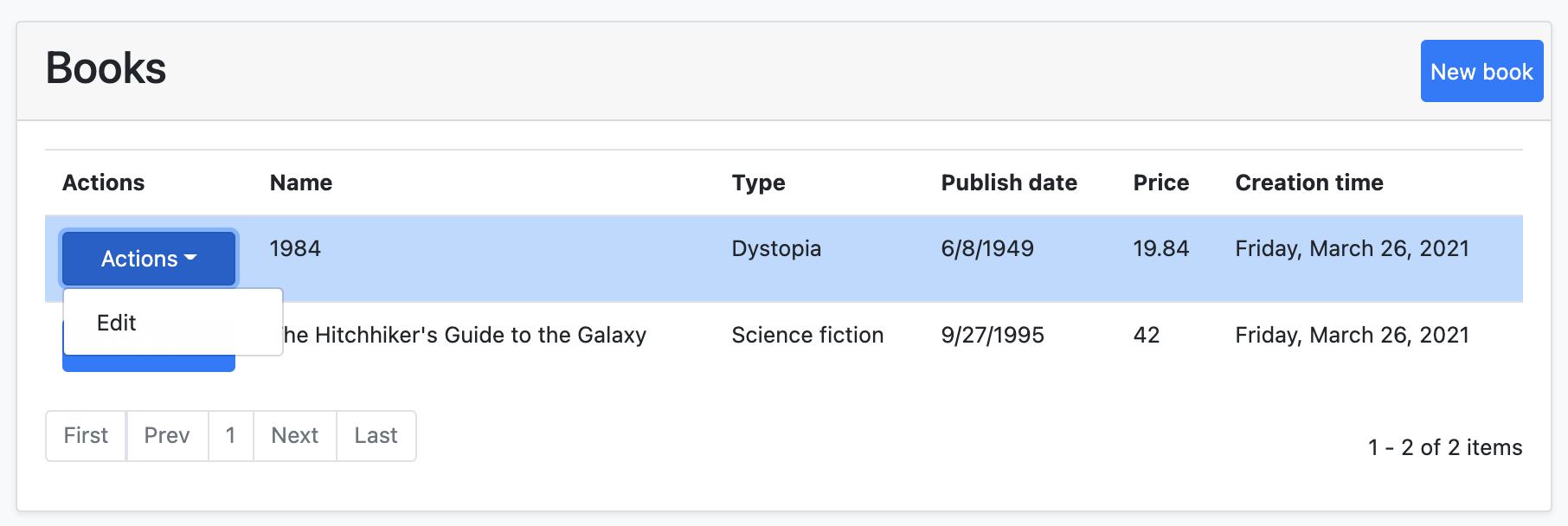 Here the complete code to create the book management CRUD page, that has been developed in the last two parts: